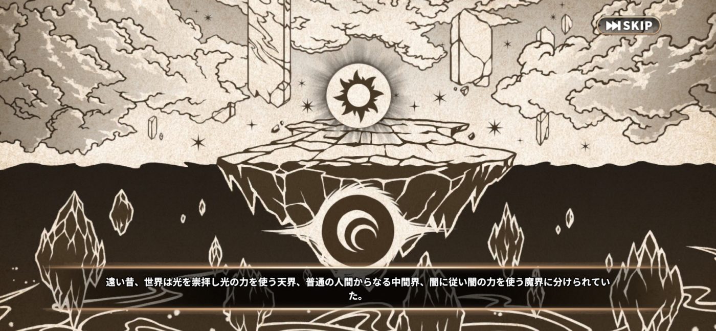 ゲームの舞台となるのは光を崇拝する天界、人々の住まう中間界、闇に生きる魔界に分断されている異世界。